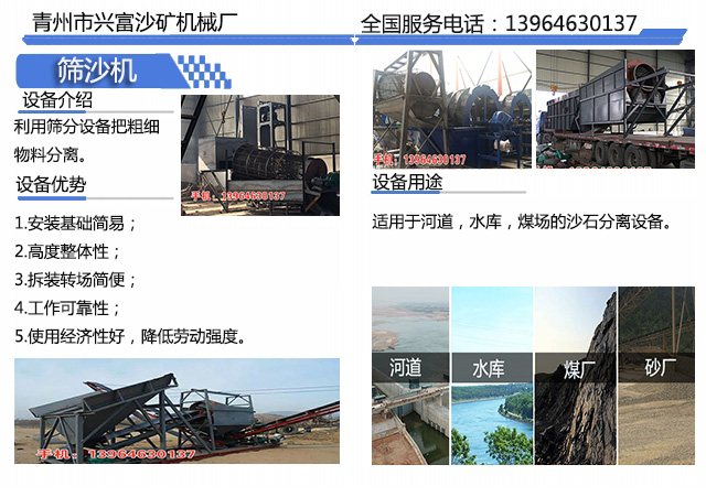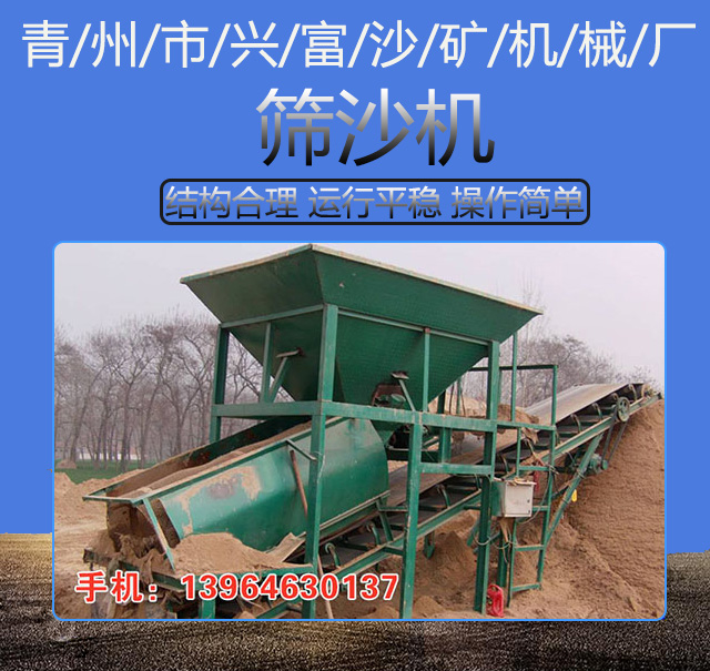 地面篩沙設備,機械上料,拖動行走,十分方便,工作量每小時60-300立方米,篩選方式分為振動篩式和滾筒篩式兩種。