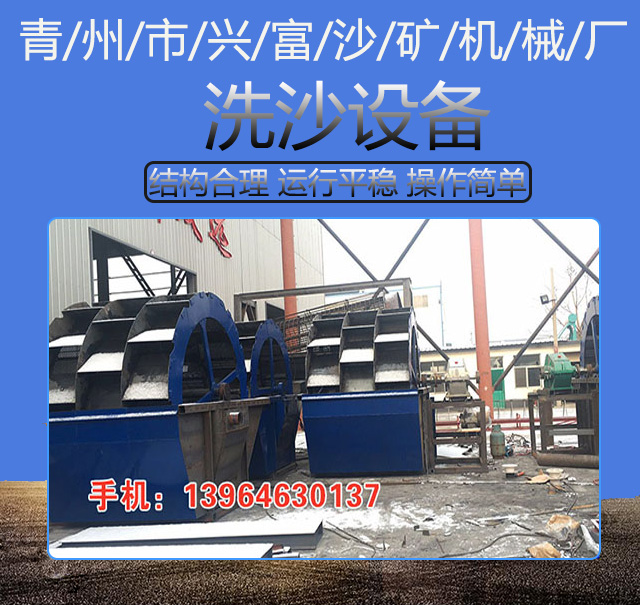 洗沙機是人工砂(包括天然沙)的洗選設備。洗砂機廣泛用于砂石場、礦山、建材、交通、化工、水利水電、混凝土攪拌站等行業中對物料的洗選,它能除去覆蓋 砂石表面的雜質,同時破壞包覆砂粒的水汽層,以利于脫水,起到高效洗砂清洗作用。洗砂機又叫洗石機,主要用于砂類產品的去除雜質(如粉塵)的機器,因較多 使用水洗的方法,故稱為洗砂。其中,因為一般是對機制砂(由石料破碎而成),所以也被稱為洗石機。因其外觀和原理不同,也被稱為螺旋洗砂機,滾筒洗砂機, 水輪洗砂機(又稱輪式洗砂機),震動洗砂機等。