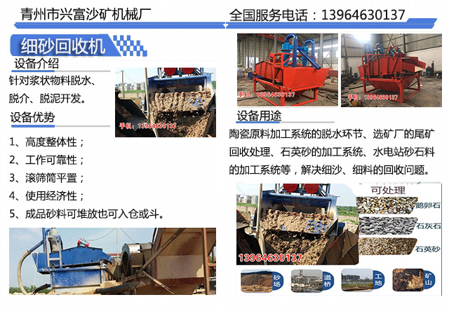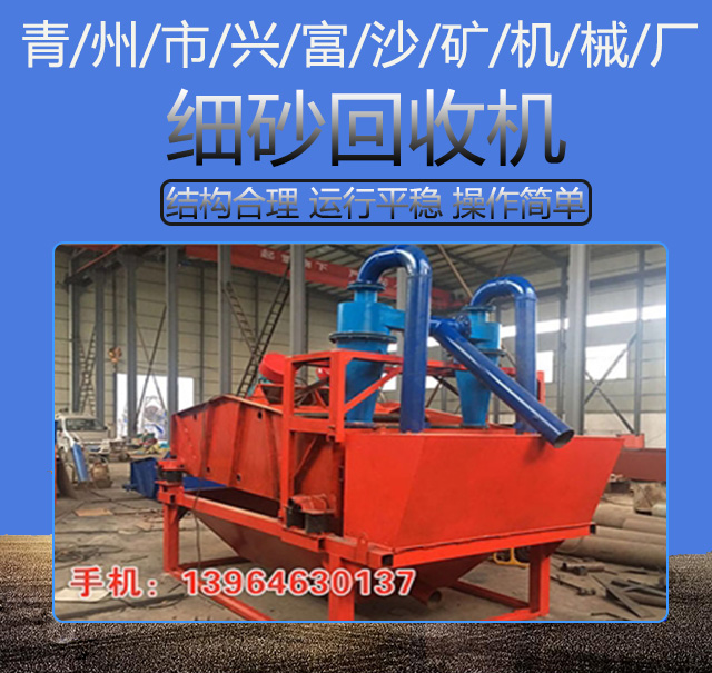 細砂回收裝置能夠合理的分解砂水混合物,實現細沙的回收利用工程。細砂回收裝置最大可回收排放總量中95%的細顆粒物料,具有其設備無可比擬的技術和經濟優勢。